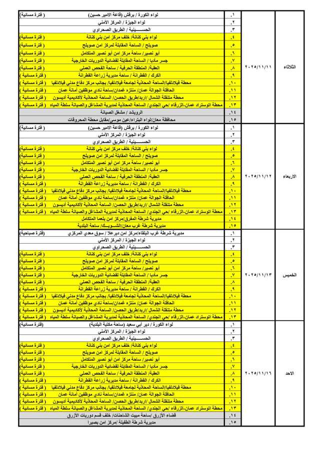 وستعمل المحطات المسائية في 11 موقعًا موزعة على النحو التالي: