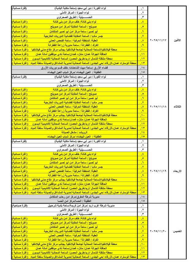 أوتوستراد عمان-الزرقاء: حي الجندي/الساحة المحاذية لمديرية المشاغل والصيانة سلطة المياه