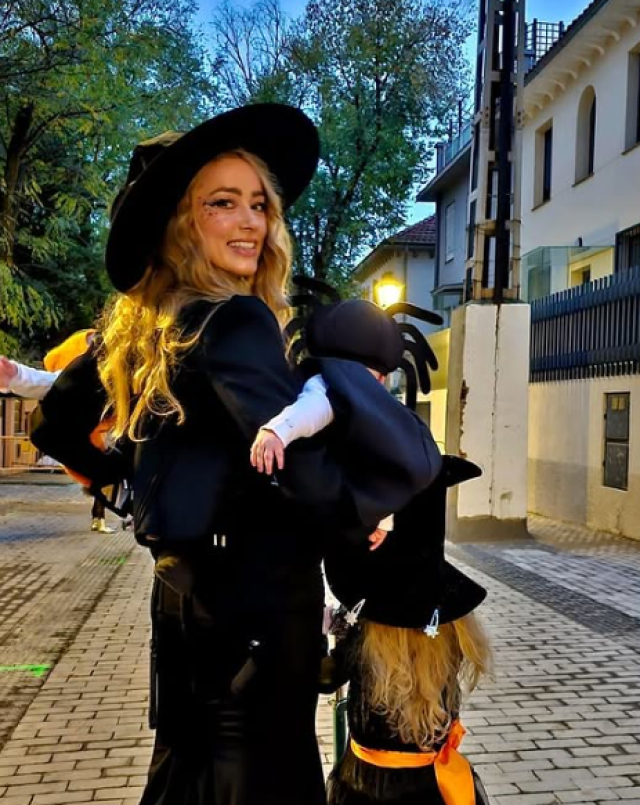تظهر آمبر في الصور مرتدية زيا أسود من وحي الساحرات مع قبعة مدببة تضيف لمسة من الغموض والجاذبية بينما تحمل توأمها البالغين من العمر خمسة أشهر واللذين ظهرا بملابس مستوحاة من أجواء الهالوين إذ ارتدى أحدهما قبعة على شكل عنكبوت فيما تميز الآخر بقبعة قرع برتقالية زاهية تضيف لمسة طفولية لطيفة على اللقطات.
