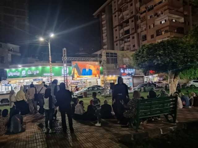 توافد المواطنين على شاشات العرض لمتابعة حفل افتتاح المتحف بالإسماعيلية