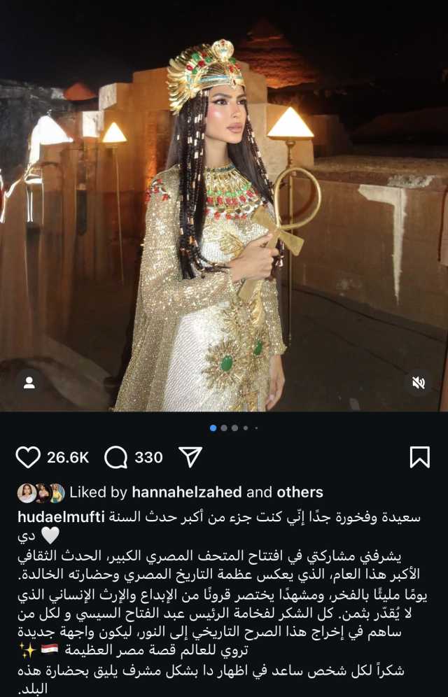 كلمات دلالية: هدى المفتي افتتاح المتحف المصري الكبير المتحف المصري الكبير إنستجرام الرئيس عبد الفتاح السيسي مصر افتتاح المتحف المصری الکبیر هدى المفتی
