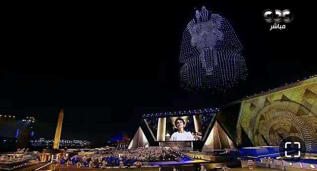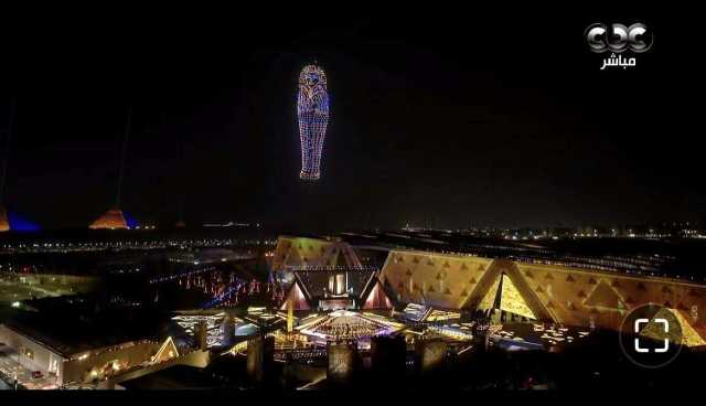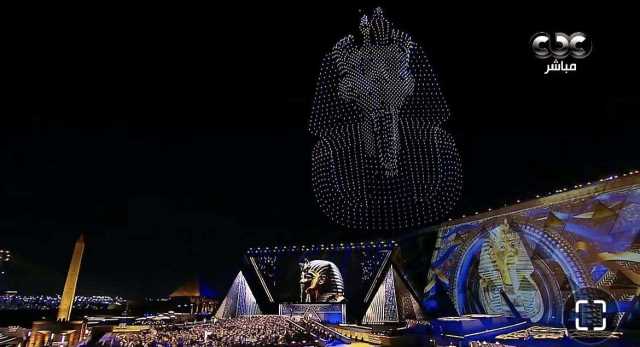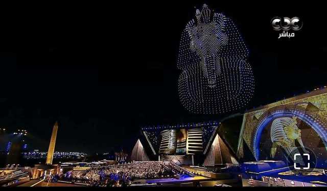 الملك الذهبي يطل من السماء.. توت عنخ آمون يخطف الأضواء في افتتاح المتحف الكبير (صور)