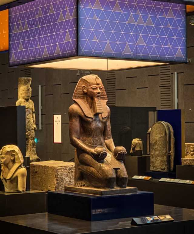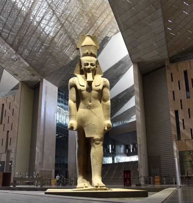 - يضم المتحف تمثال الملك رمسيس الثاني الذي استقر في موقعه المهيب داخل البهو العظيم.