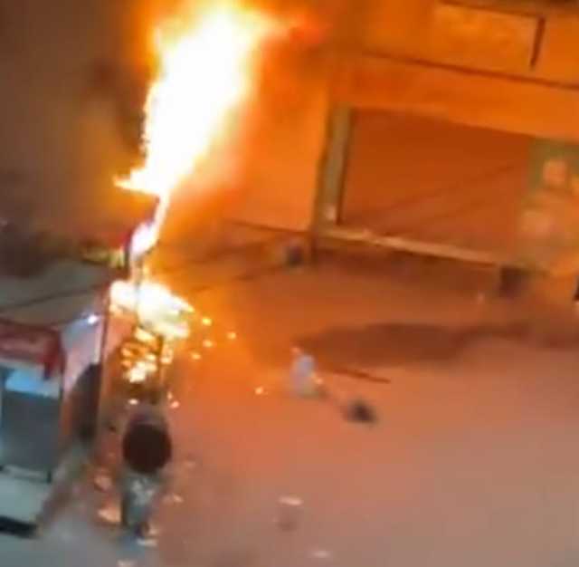 وعلى الفور انتقلت الأجهزة الأمنية مدعمة بسيارات الإطفاء إلى مكان الحريق وتم فرض كردون آمني لمنع امتداد الحريق .