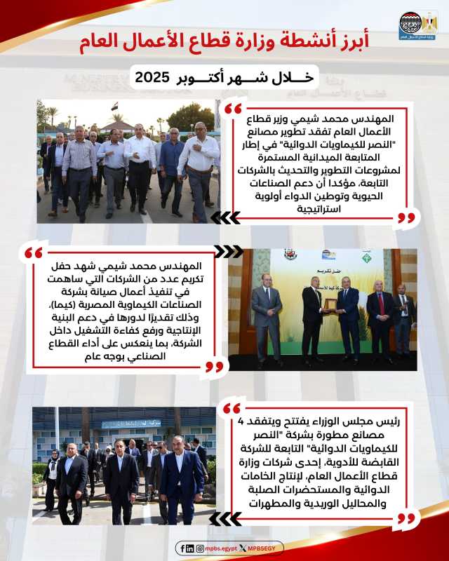 أبرز أنشطة وزارة قطاع الأعمال العام خلال شهر أكتوبر 2025.. صور