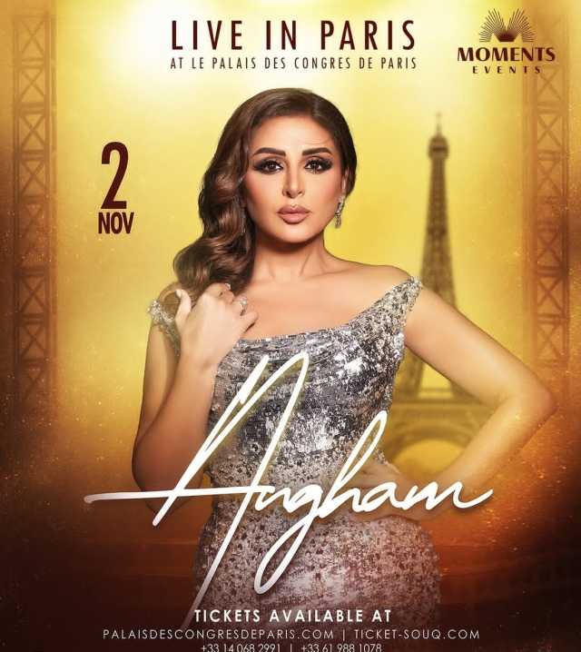 تحيي الفنانة أنغام أحدث حفلاتها الغنائية، اليوم، في باريس، على مسرح Le palais des congres de paris ، حيث من المقرر أن تقدم باقة من أغانيها المتنوعة.