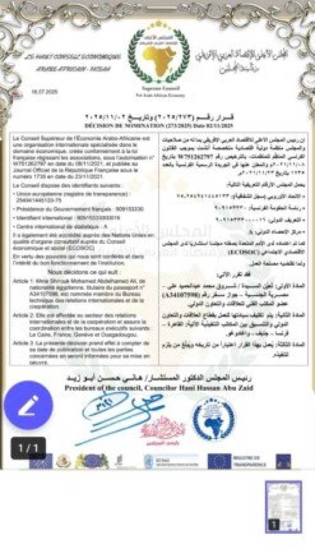 كلمات دلالية: المجلس الأعلى للاقتصاد العربي الإفريقي والتعاون الدولی شروق محمد