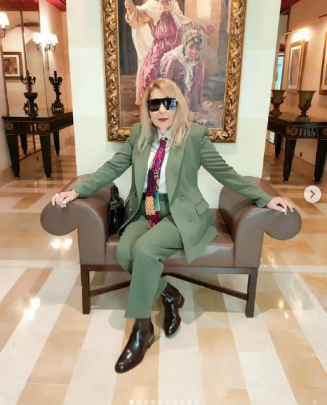 خطفت نادية الجندي الأنظار في الصور بإطلالة كلاسيك، حيث ارتدت بدلة باللون الأخضر ونسقت معها قميص باللون الأبيض.