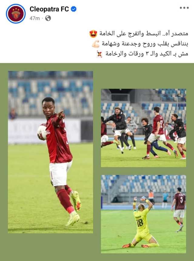احتفل نادي سيراميكا كليوباترا بتصدره جدول الدوري الممتاز بطريقة مميزة عبر صفحته الرسمية على فيسبوك، حيث كتب الحساب: "متصدر آه.. انبسط واتفرج على الخامة.. بننافس بقلب وروح وجدعنة وشهامة.. مش بـ الكيد والـ3 ورقات والرخامة."