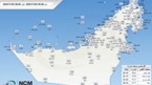 أخبار ذات صلةوأكد"الوطني للأرصاد" عبر منصة إكس أن أقل درجة حرارة سجلت على الدولة صباح هذا اليوم هي 13.7 درجة مئوية في ركنة (العين) الساعة 06:45 بالتوقيت المحلي لدولة الإمارات.