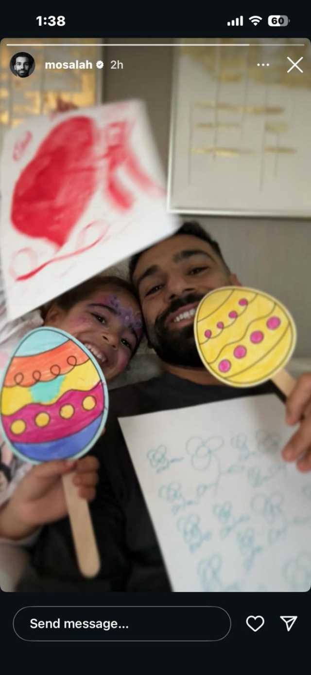 وظهر مو صلاح ، في الصورة رفقة ابنتى الصغيرة، أثناء ممارستهما نشاط الرسم.