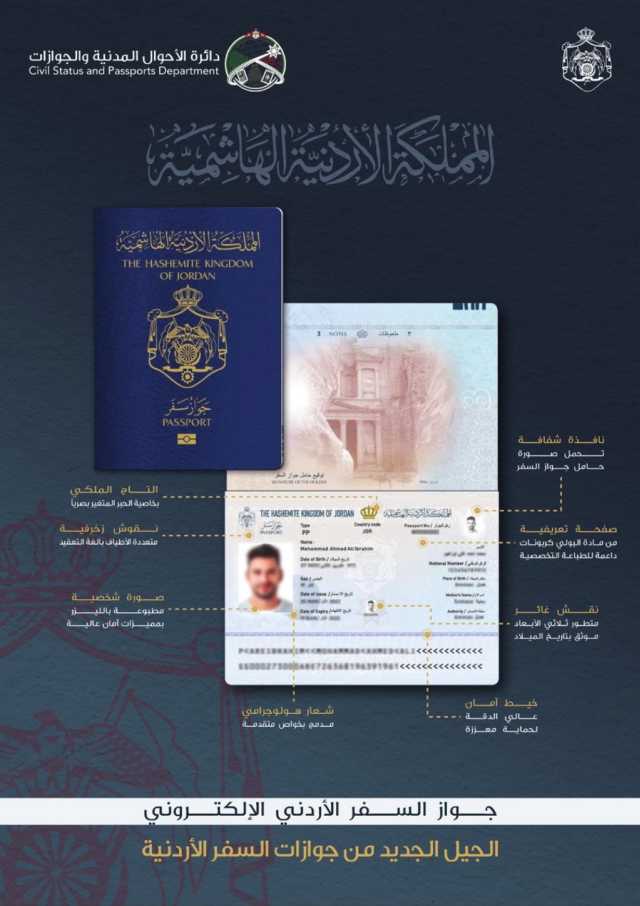 صراحة نيوز- كشفت دائرة الأحوال المدنية والجوازات عن مواصفات الجيل الجديد من جوازات السفر الأردنية/ الجواز الإلكترونية.