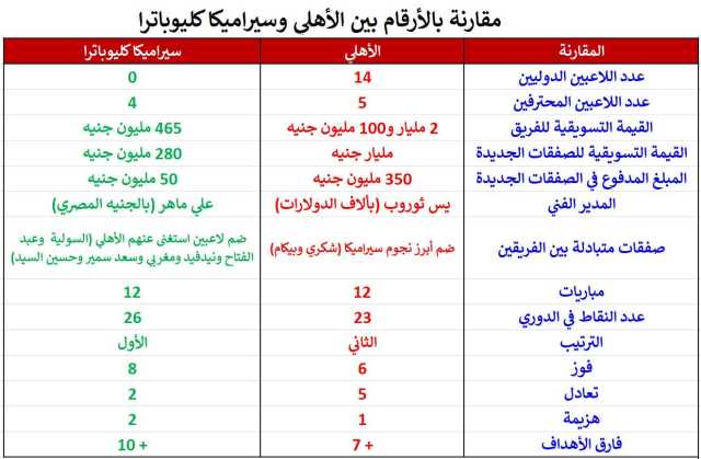 وكتب خالد طلعت عبر صفحته على موقع التواصل الاجتماعي فيسبوك:"مقارنة بالأرقام بين الأهلي وسيراميكا كليوباترا".