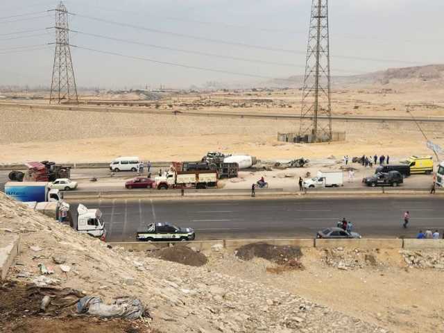 تصادم سيارتي نقل وملاكي على الطريق الأوسطي بحلوان..صور