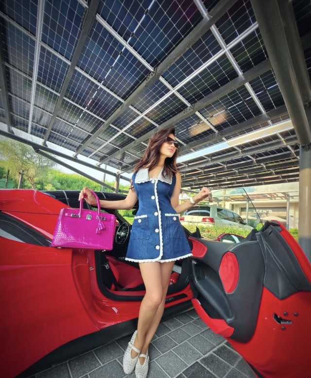 وظهرت مي عمر بإطلالة بفستان كاجوال جينز أنيق، حيث ارتدت حقيبة بينك و حزاء أبيض يضفي لمسة من الرقي والبساطة.