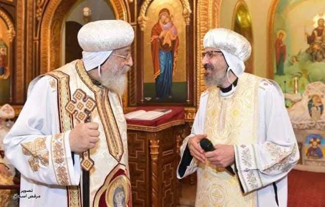 الأنبا أنجيلوس وشعب كنائس شبرا الشمالية يهنئون البابا تواضروس بعيد ميلاده وذكرى جلوسه