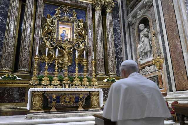 البابا لاون يزور بازيليك القديسة مريم الكبرى ويصلي أمام ضريح البابا فرنسيس
