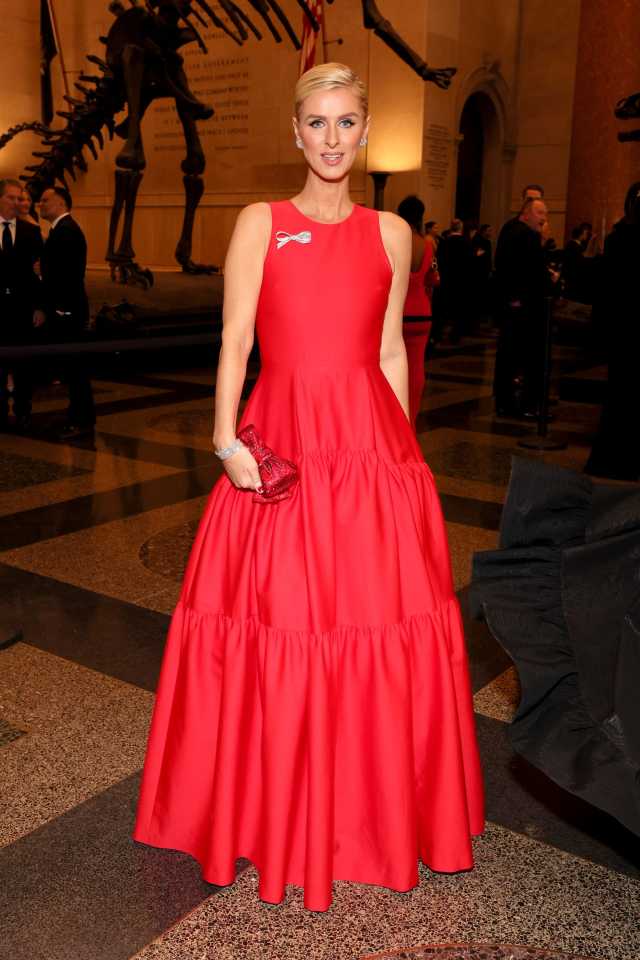 اعتادت هيلتون الظهور في هذا الحفل بتصاميم العلامة الأمريكية للأزياء، حيث ارتدت العام الماضي فستانًا أصفر فاتحًا بقصّة الأكتاف العارية من مجموعة ربيع وصيف 2025 للملابس الجاهزة، تميّز بقصّته الطويلة وشقّه العالي عند الساق مع جيوب جانبية .