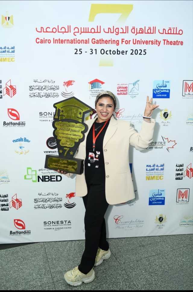 تكريم الصحفية إسراء عادل في ملتقى القاهرة للمسرح الجامعي