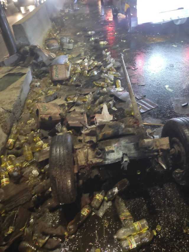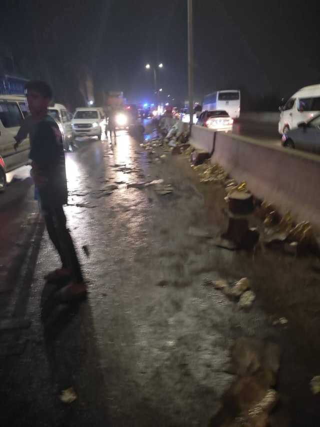 الأسفلت بقى بقع زيت | شاهد حادث سيارة نقل سلع تموينية بأبو زعبل