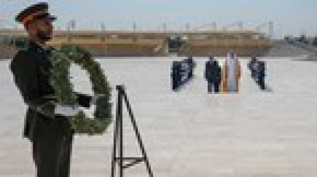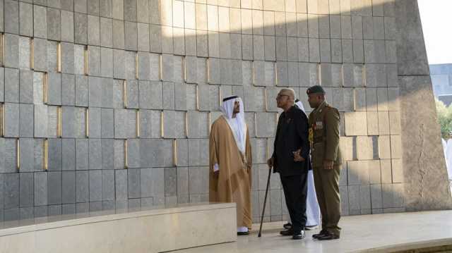 واستعرض فخامة رئيس جمهورية فيجي، يرافقه سمو الشيخ زايد بن محمد بن زايد آل نهيان، حرس الشرف الذي اصطفَّ لتحيته، ثمَّ وضع إكليلاً من الزهور أمام نصب الشهيد.