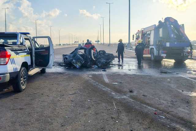 بالطريق الإقليمي .. مصرع 3 أشخاص وإصابة آخر بسبب حريق سيارة