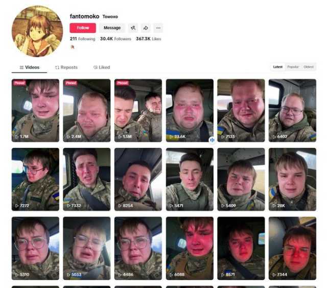 واستخدمت حسابات على المنصات الفيديو في سياقات متعددة لتصوير معاناة الجنود الأوكرانيين على الخطوط الأمامية، من بينها "شاب صغير زُج به في القتال".