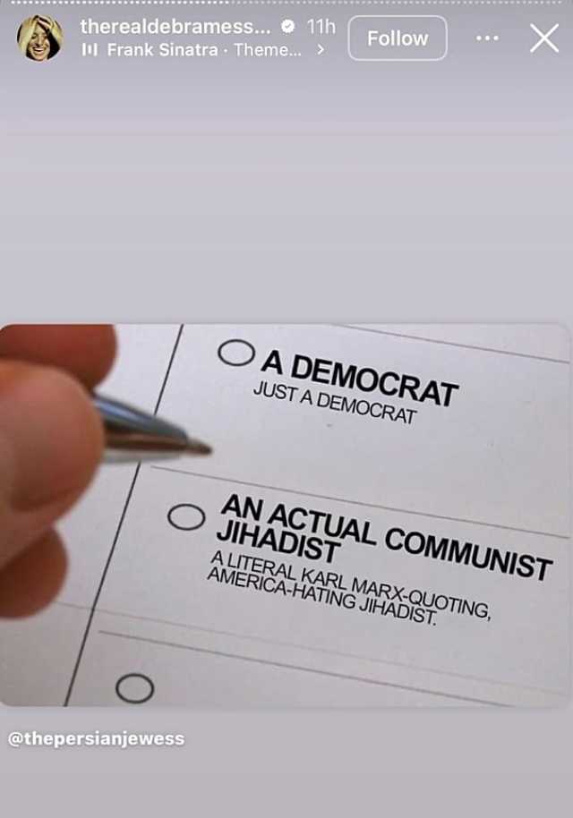 أعادت ميسينغ أيضا نشر صورة ساخرة توحي بأن ممداني "شيوعي حقيقي، وجهادي... جهادي يقتبس كارل ماركس حرفيا ويكره أميركا".