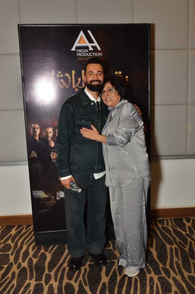وخطف الانظار حضور الفنانة والمنتجة اسعاد يونس وحرصت علي تهنئة فريق العمل وتغيب الفنان الكبير حسين فهمي عن حضور العرض الخاص بسبب وفاة شقيقة زوجته صباح اليوم.