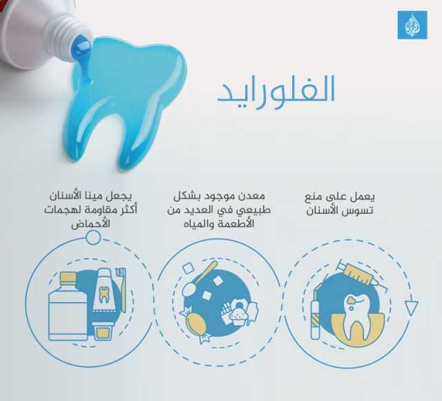 الفلورايد معدن طبيعي موجود في العديد من الأطعمة والمياه. وفي طب الأسنان، يستخدم مقدمو الرعاية الصحية الفلورايد لتقوية الأسنان وتقليل خطر التسوس، وفقا لكليفلاند كلينيك بالولايات المتحدة.