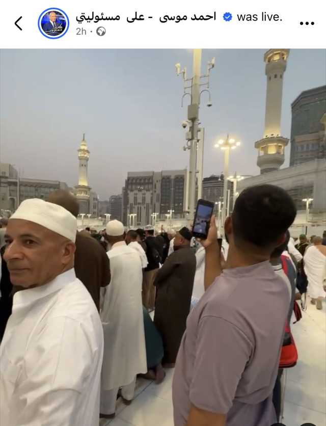 وظهر موسى في البث مرتديًا جلبابًا أبيض وطاقية، مستمتعًا بالأجواء الإيمانية والروحانيات التي تملأ المكان، بينما كان صوت الأذان يعلو من حوله في مشهد مؤثر نال إعجاب متابعيه.