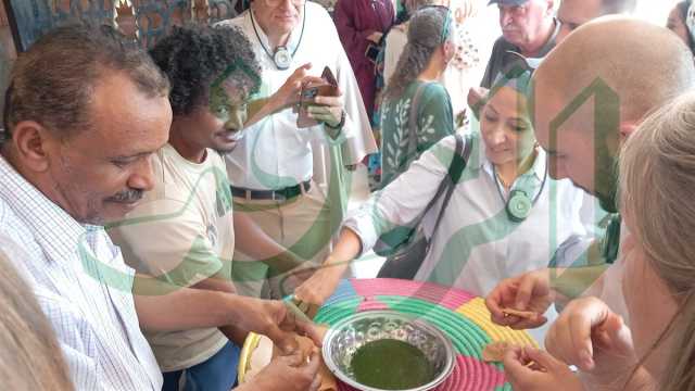 كما تفقد الوفد المشاريع المقامة من مشغولات ومأكولات نوبية وتذوق البعض منهم للمأكولات، وأيضا قاموا بشراء العطور والبخور والحلي النوبي.