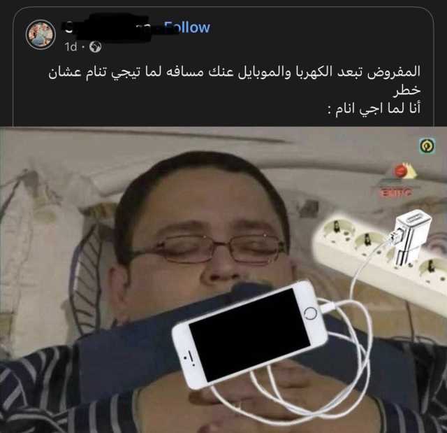 وكتبت سارة أسامة عبر حسابها الشخصي بموقع التواصل الإجتماعي الأشهر “فيس بوك”: المفروض تبعد عنك الكهربا والموبايل عنك مسافة لما تيجي تنام"، لافتة خلال المنشور أنها تنام وبجانبها الموبايل موصولًا بالكهرباء.