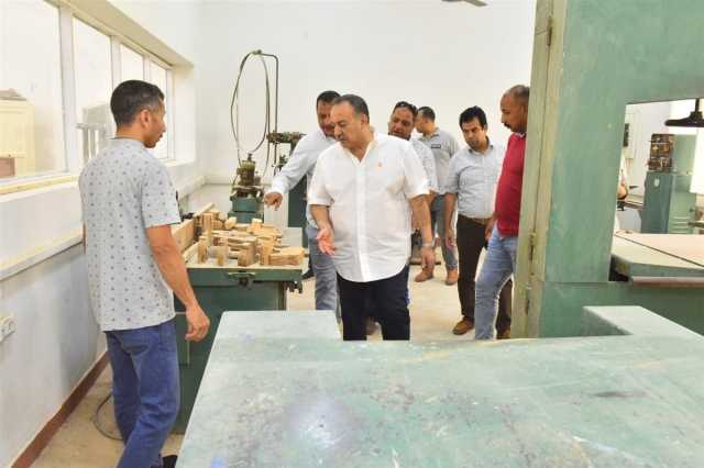 وخلال الجولة، تفقد محافظ أسيوط أرجاء المركز والورش التدريبية الملحقة به، واطلع على مراحل العمل الجارية داخل ورش الخياطة والتطريز والمنتجات الجلدية، موجهًا بسرعة الانتهاء من أعمال الصيانة والتجهيزات، والتأكد من تطبيق معايير السلامة والصحة المهنية داخل الورش حفاظًا على العاملين والمتدربين.