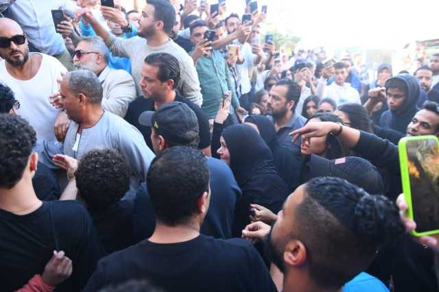 وسيطرت حالة من الحزن على الفنان محمد رمضان ونجله خلال تشييع جنازة والده إلى مثواه الأخير للدفن في مقابر العائلة، بحضور زوجته وشقيقته، مع غياب عدد كبير من نجوم الفن.