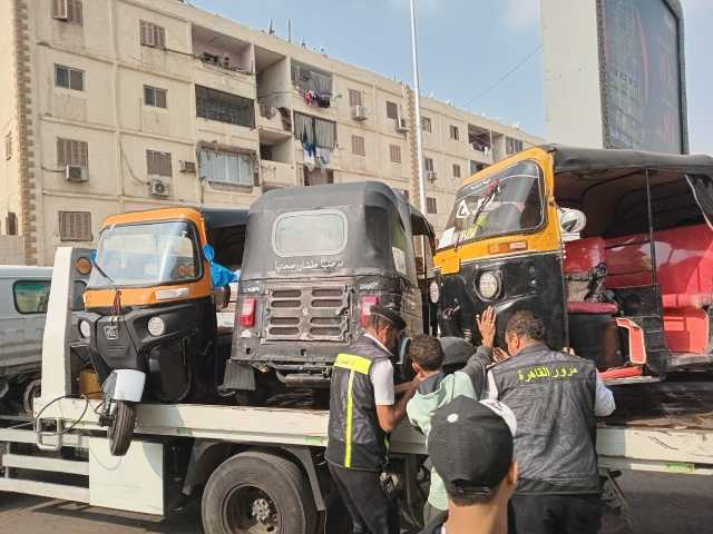 بعد قرار المنع.. حملات أمنية موسعة على التوك توك في المقطم| صور