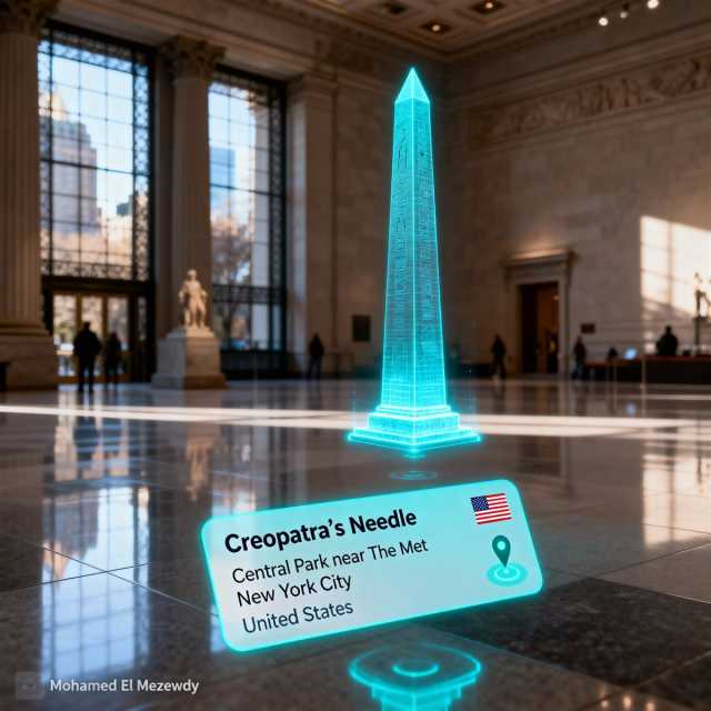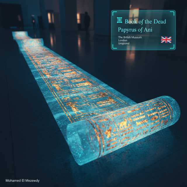 وأضاف :" تم تطوير الفكرة لتخصيص وثيقة إلكترونية لجمع توقيعات الزائرين من كل دول العالم والمطالبة بإسترجاع تلك الأثار من الدول الحالية إلى مصر وتنضم لمجموعة معروضات المتحف المصري الكبير، وقمت فقط بتجسيد الفكرة بإستخدام ادوات الذكاء الاصطناعي وتقدر تقرأ نبذة عن كل قطعة في الكابشن وظروف خروجها من مصر".