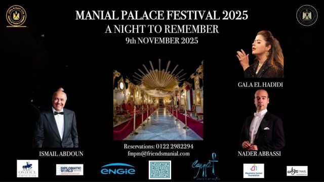 تختتم جمعية أصدقاء متحف قصر المنيل مهرجانها السنوى للموسيقى والفنون لعام 2025 والذى يتواكب مع ذكرى مرور 150 عام على ميلاد الامير محمد على مؤسس القصر التاريخى بجزيرة الروضة بالمنيل بأمسية للاوركسترا بقيادة المايسترو العالمى نادر عباسى ومشاركة السوبرانو جالا الحديدي ويتضمن مجموعة مميزة من مؤلفات الموسيقار اسماعيل عبدون وذلك فى الثامنة مساء الاحد 9 نوفمبر بحديقة القصر، وذلك تحت رعاية وزارتى الثقافة والسياحة والآثار.