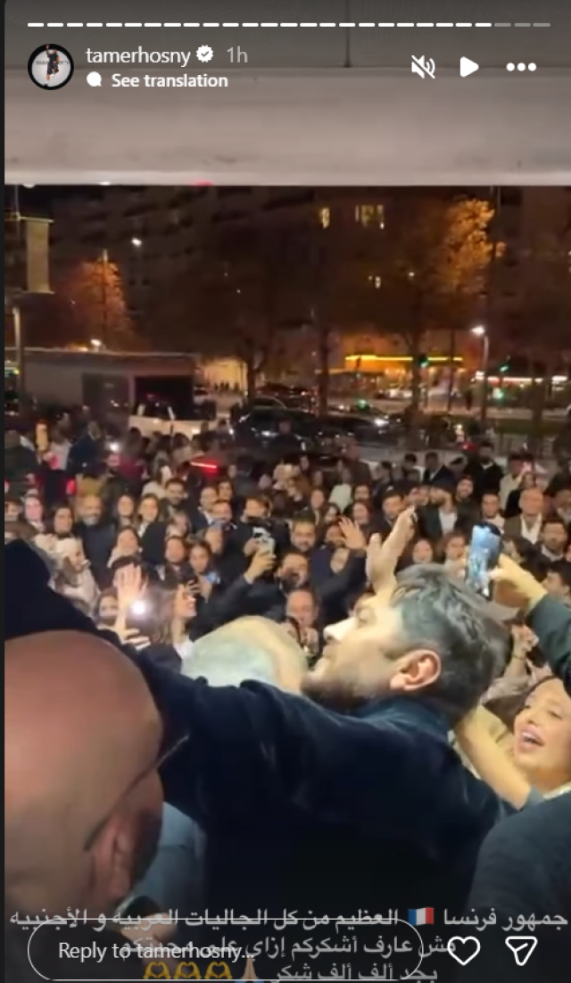 من جانبه، أعرب تامر حسني عن بالغ سعادته بحفاوة استقبال جمهوره له في باريس، موجهًا شكره إلى الجمهور العربي في فرنسا وكل من سافر من دول أوروبية أخرى لحضور الحفل، مؤكدا أن هذا الحب المتبادل بينه وبين جمهوره هو الدافع الأكبر وراء استمرار نجاحاته حتى يومنا هذا.