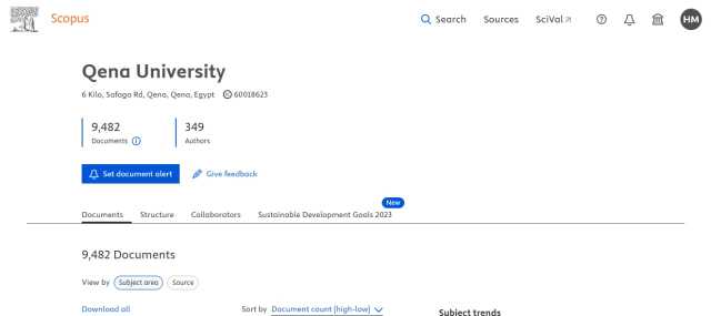 تغيير اسم جنوب الوادي إلى جامعة قنا في قاعدة بياناتScopus العالمية
