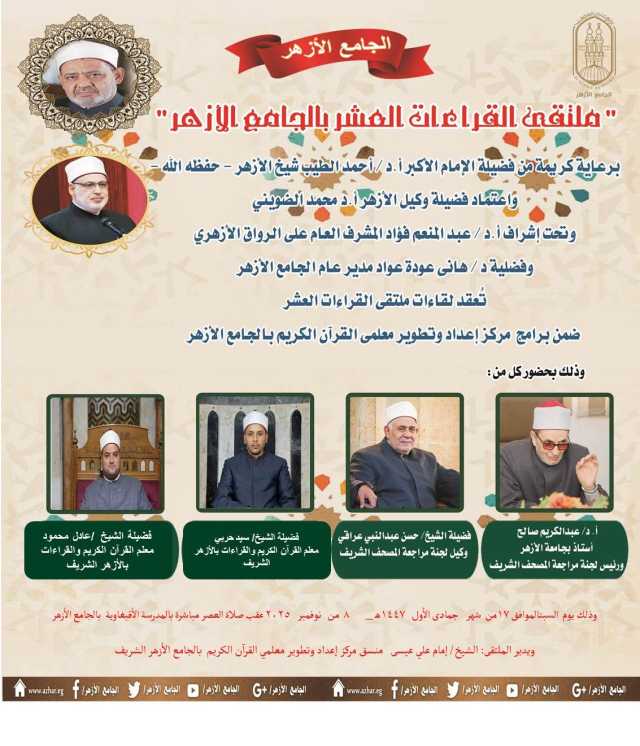 ودعا د. عودة، جميع المهتمين بعلوم القرآن الكريم، سواء كانوا طلابًا أو معلمين أو جمهورًا عامًا، للمشاركة في هذا الملتقى الفريد، حيث يُعتبر هذا الحدث فرصة قيِّمة للتعلم والتفاعل مع كبار المتخصصين في القراءات، مما يعزز من ترسيخ القيم القرآنية في المجتمع.