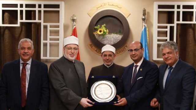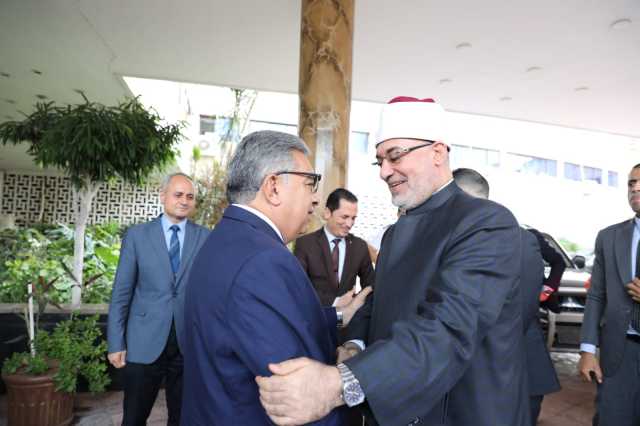 محافظ الدقهلية يستقبل مفتي الجمهورية في إطار احتفال جامعة المنصورة بعيد العلم