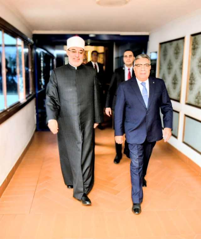ورحّب " المحافظ " بالمفتي ، مؤكدًا اعتزاز المحافظة بمؤسساتها العلمية والدينية والوطنية، وأن اجتماع العلم بالقيم يرسّخ مسار الدولة نحو بناء الإنسان والارتقاء بوعيه.