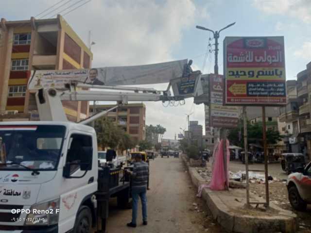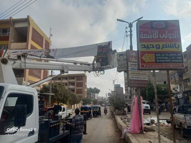 كفرالشيخ تزيل 36 إعلانًا مخالفًا بالحامول وتكثف الحملات