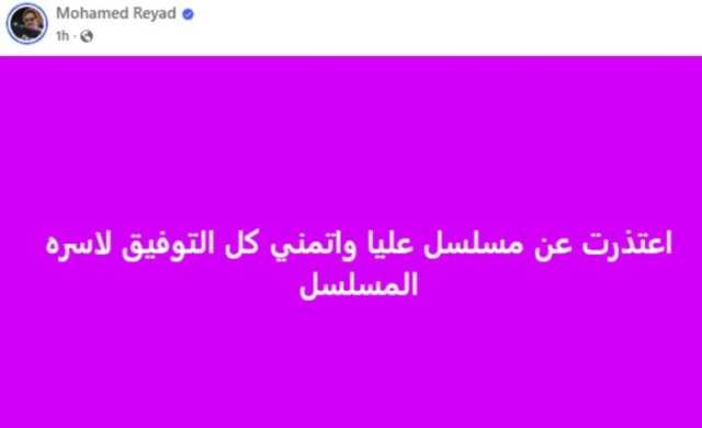 أعلن الفنان محمد رياض، اعتذاره عن المشاركة بمسلسل «عاليا» من بطولة الفنانة غادة عبد الرازق خلال الساعات القليلة الماضية، والمقرر عرضه ضمن أعمال الموسم الدرامي لمسلسلات رمضان 2026.