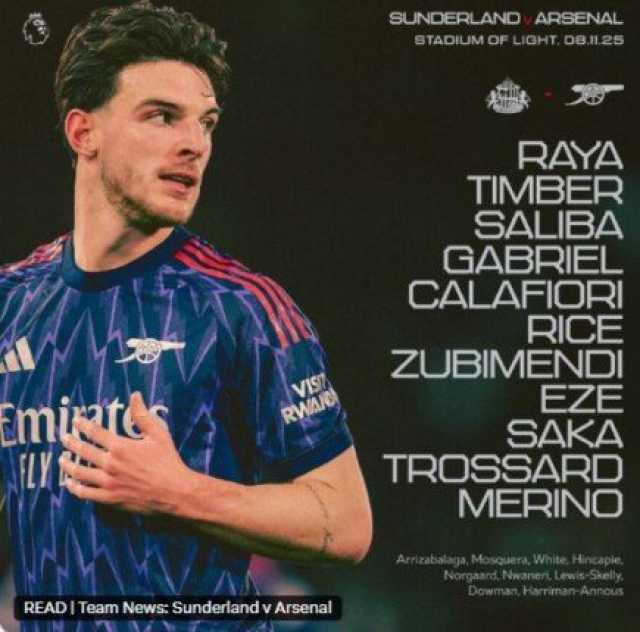 ساكا يقود هجوم أرسنال أمام سندرلاند بالدوري الإنجليزي الممتاز