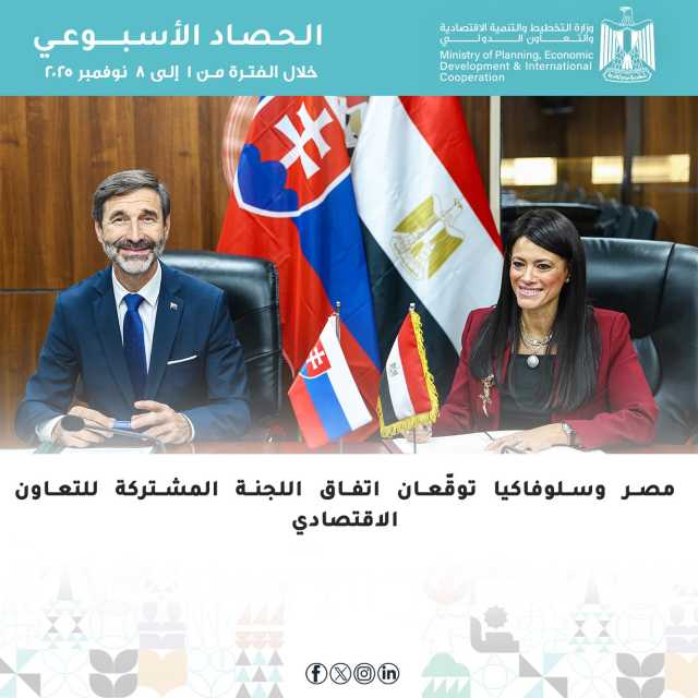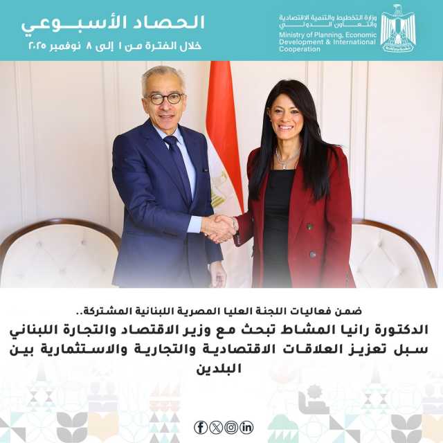 ننشر تفاصيل الحصاد الأسبوعي لوزارة التخطيط والتنمية الاقتصادية والتعاون الدولي