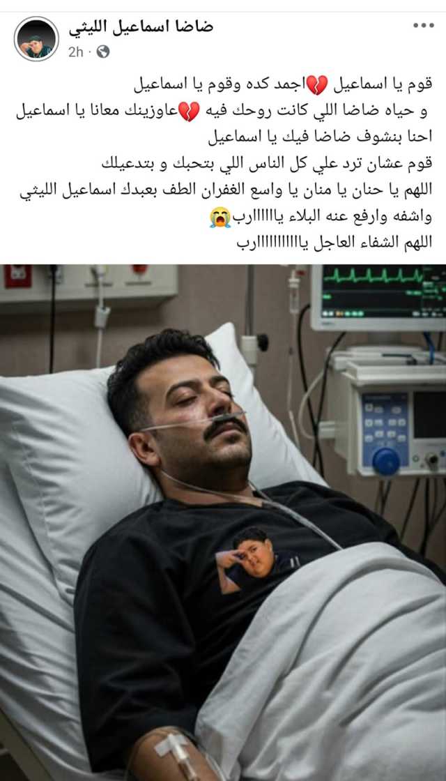 ونشرت الصفحة الرسمية لإسماعيل الليثي على فيسبوك رسالة مؤثرة، ناشدت الفنان بالصمود والقوة، مؤكدين أنهم يرون فيه روح ضاضا نجله، وأنهم في انتظار عودته للتواصل مع محبيه.