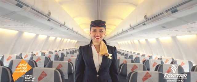 شعار المتحف المصرى الكبير يزين مقاعد طائرات مصر للطيران فى مختلف رحلاتها