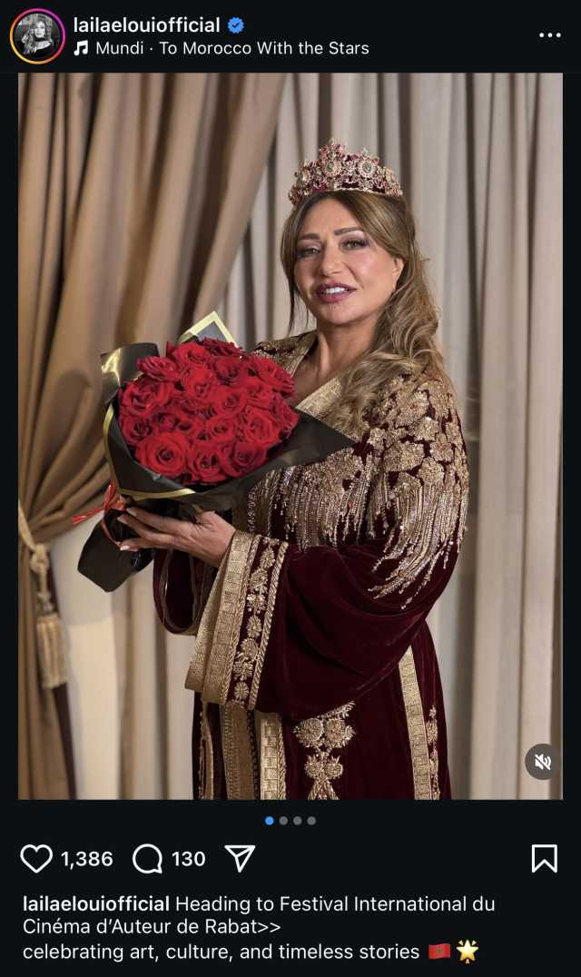 نشرت الفنانة ليلى علوي، صور لها عبر حسابها الشخصي بموقع إنستجرام أثناء تواجدها في المغرب بالزي التقليدي لهم، لحضور مهرجان الرباط الدولي.